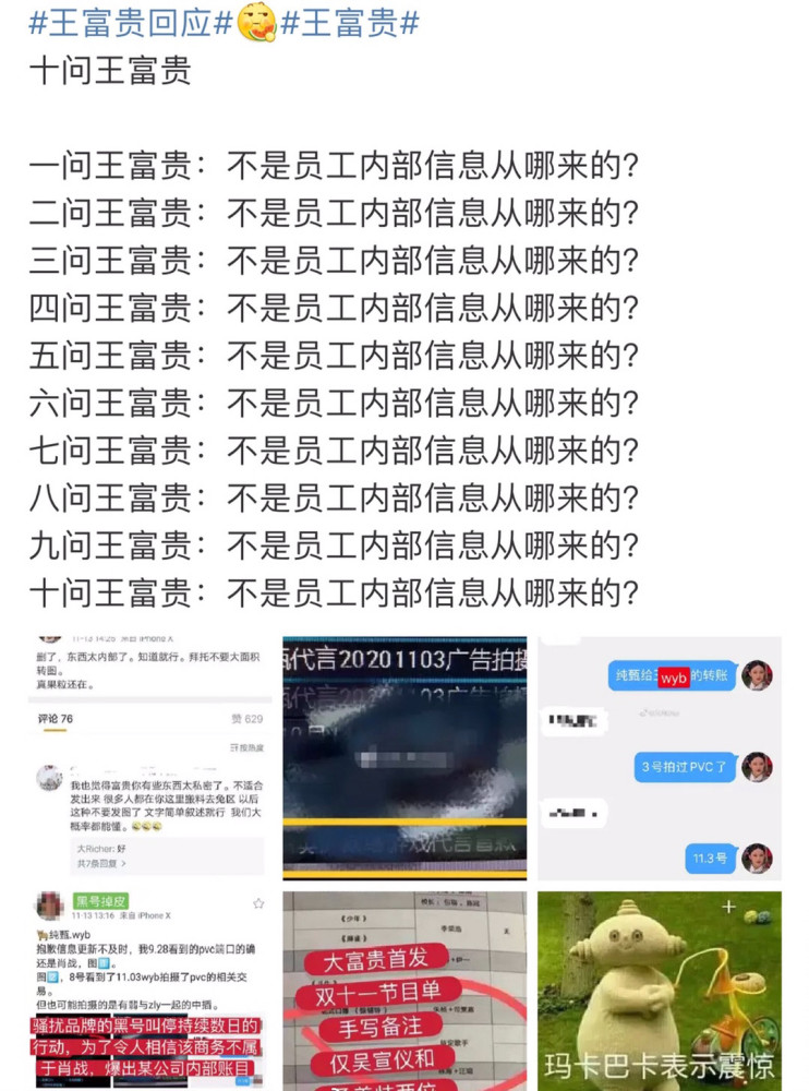 虽然乐华发布了声明,可是有些网友仍然对此嗤之以鼻,并十问王富贵“不是员工内部信息从哪来的?”