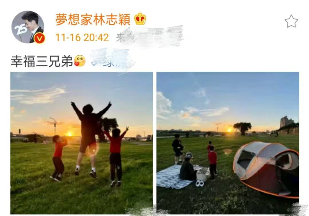 11月16日下昼,林志颖娇妻陈若仪在个人社交平台分享了一张带三个儿子户外玩耍的照片,还颇为感慨地写道:“真实的快乐来自于懂得感恩”。