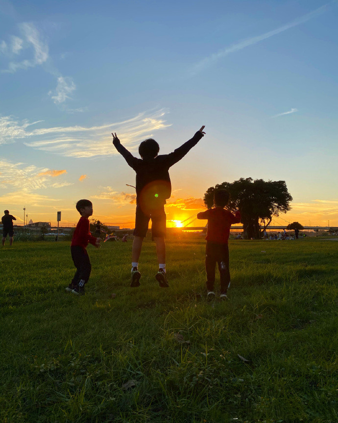 林志颖po出的照片里,Kimi依旧带着弟弟们蹦蹦跳跳,只不过这次双子星弟弟也同哥哥一块儿比起了剪刀手哦,真是隔着屏幕都被兄弟仨给可爱到了。