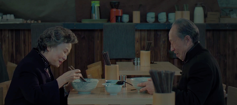 一对老夫妻边散步边闲话逗趣。他们走到落叶不扫的小街尽头,去吃一碗面——老花样。