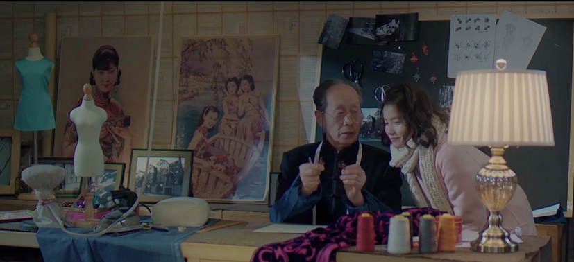 镜头下,老先生坐在自己的裁缝铺里,精心制作一件“烂花丝绒”旗袍,孙女试穿起来,感动得要哭,老先生却道:还不知道她喜不喜欢呢。
