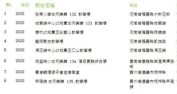 在慈恩基金会的官网上,详细列出了古天乐捐献学校的数量,地址,金额等数据,这些学校首要建在几个省份偏远山区中,目前已经捐献了135座学校,以及教学楼。