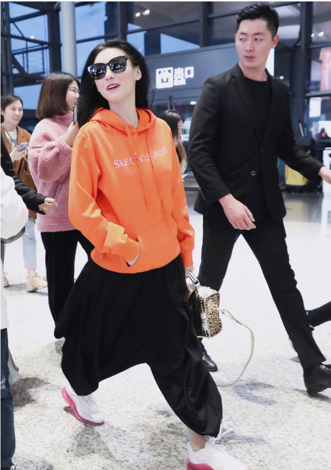 除了日常穿搭外,张柏芝走机场也穿过这条裤装,上身搭配橘红色卫衣,一身混搭风走在时尚前沿,脚踩小白鞋元气满满,这就是辣妈的时尚品味,不走寻常路的潮流,才是流行元素。