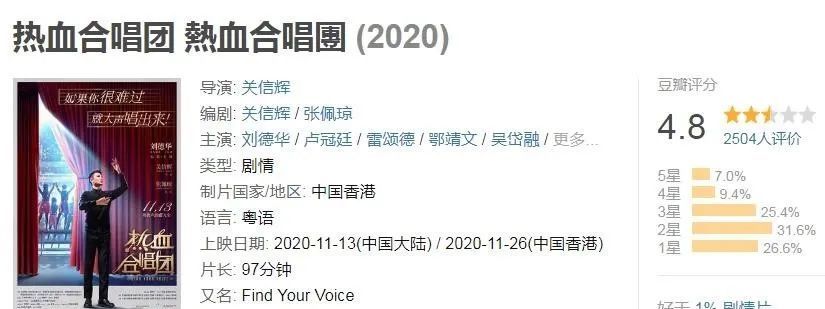 现在主导一部电影的因素,更多是电影的创作职员,以及他们所拥有的创作条件。因此,《热血合唱团》尽管有刘德华主演,票房仍然那么低!在这个“演员不再主宰电影”的时代,希望刘德华先生,还是多挑选一些好片子吧!