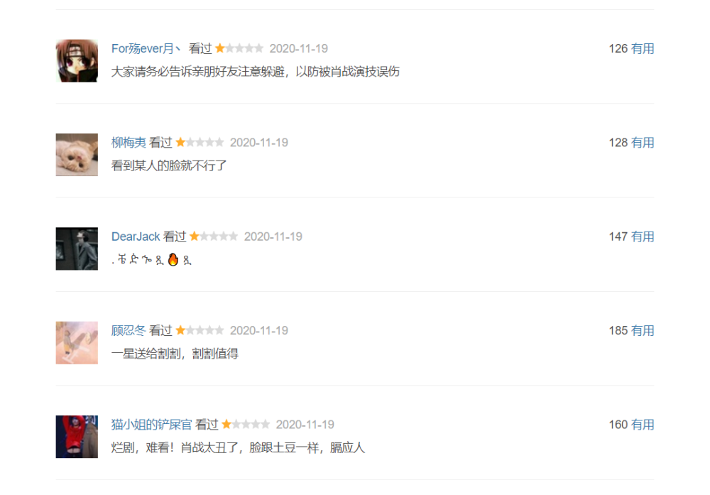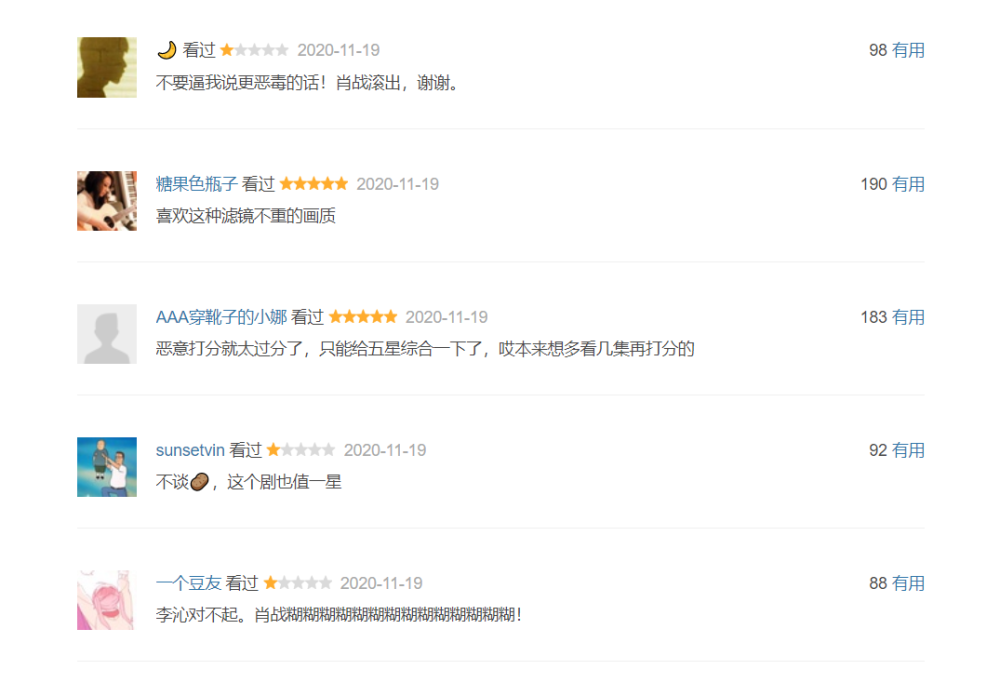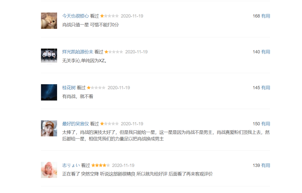 然而仅仅10分钟,该剧短评即增加了300多条,肖战粉丝彻底败北,前3页几乎看不到5星好评,放眼望去全是1星差评。