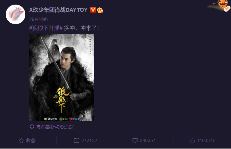 肖战实在太红了,粉丝战斗力又爆棚,所以该剧刚宣布开播粉丝就像打鸡血了一样疯狂打call,超话广场被肖战“疾冲”刷屏。