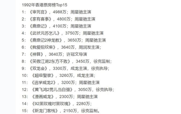 在票房前15中,周星驰主演的电影就占了7部,更是霸占了前五名,这个纪录至今无人能破。
