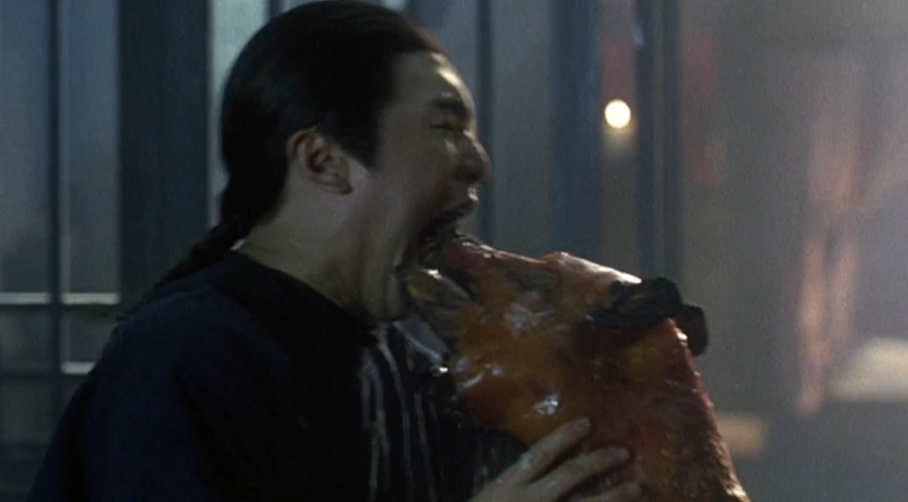 比如一开场,周星驰饰演的韦小宝头戴虎头帽站在高台上说书,然后通过和听众、老鸨的口舌之战表现出了人物的痞子特性。