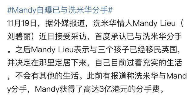 而此前媒体曝出,刘碧丽获得3亿港元的分手费。