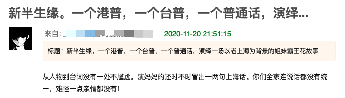 以至于有网友犀利吐槽姐姐港普,妹妹正宗普通话,妈妈时时时说两句上海话,全家连说话都没有统一,难怪一点亲情都没有。