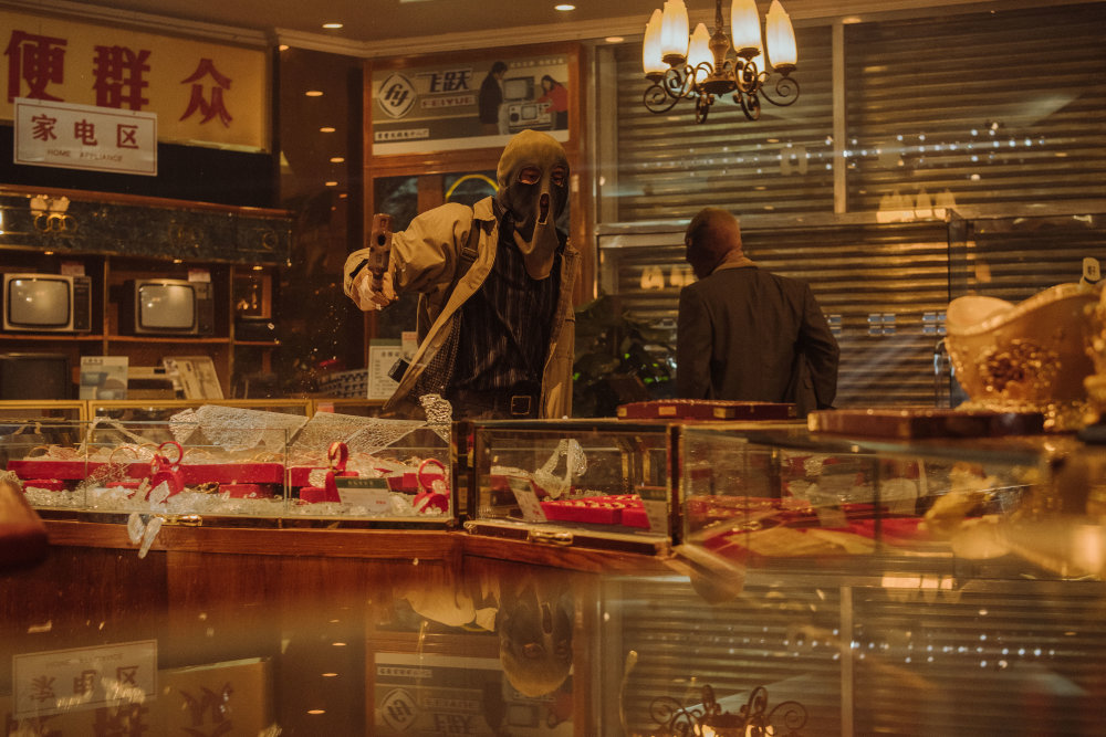 导演在筹备的时候,关于劫匪抢劫时戴什么,研究了最久。想过丝袜,但让吴彦祖戴着丝袜抢劫,欠好看,感觉是综艺节目;也想过1991年好莱坞电影《惊爆点》中的劫匪那样,戴着历任美国总统的面具抢劫,但太戏剧化。所以只能在两个极端之间选择了粗布面罩,既有可能性,同时也好看。