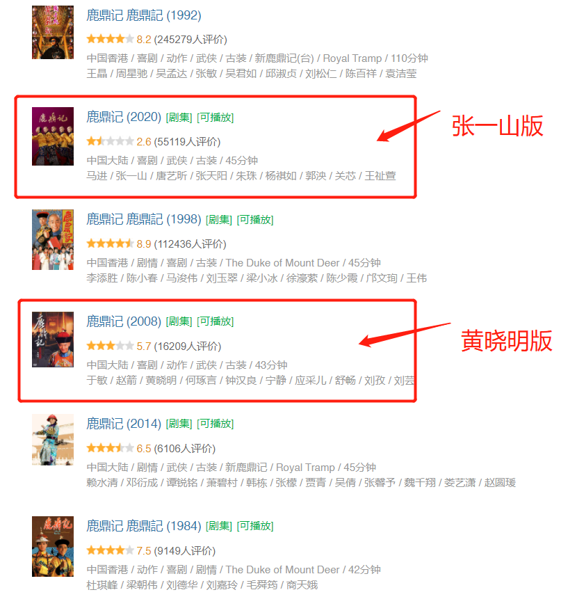 《鹿鼎记》是金庸最经典的作品,也是观众们最熟悉的故事之一,在此之前已经有了梁朝伟、周星驰、陈小春、张卫健和黄晓明等多个版本,只有黄晓明版被吐槽油腻评分不高。而张一山古灵精怪原本很适合韦小宝,没想到《鹿鼎记》却让人事与愿违,甚至还拿到最低分2.5分评分。
