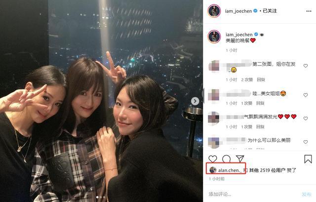 陈乔恩发布的照片明显不是自拍,这也不能不让人怀疑是否是男友艾伦掌镜,毕竟这段时间两人可谓是形影不离,陈乔恩也多次带男友参加闺蜜团聚会,而且在陈乔恩发布动态不久之后,艾伦就火速点赞,也不知是本人就在现场还是对女友十分关注。