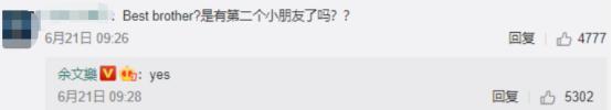 6月21日,余文乐在社交平台发文称'我最好的父亲节礼物,往后余生,都是你们',对此,有网友询问余文乐是有第二个小朋友了吗?余文乐直接回答'Yes',大方公开了老婆王棠云怀二胎的喜讯。