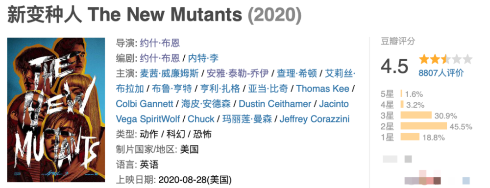 就在漫改电影集体失踪的2020年,唯逐一部漫威电影《新变种人》,于8月28日在北美吹响冲锋号。