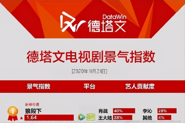 甚至在最新一期公布的电视剧景气指数当中,《狼殿下》也登顶榜首,其中肖战个人贡献度就达到了百分之40。
