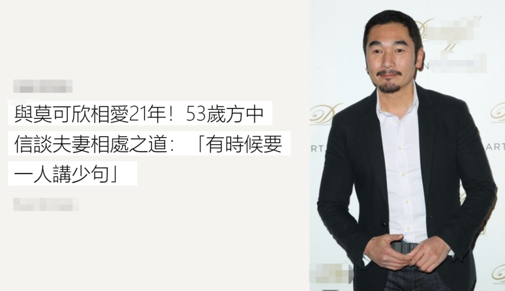 没想到莫可欣接受采访颠覆了外界眼中的恩爱婚姻“假象”,她形容自己与老公“完全是两个世界的人”,并且方中信经常挑起由头引发争持。