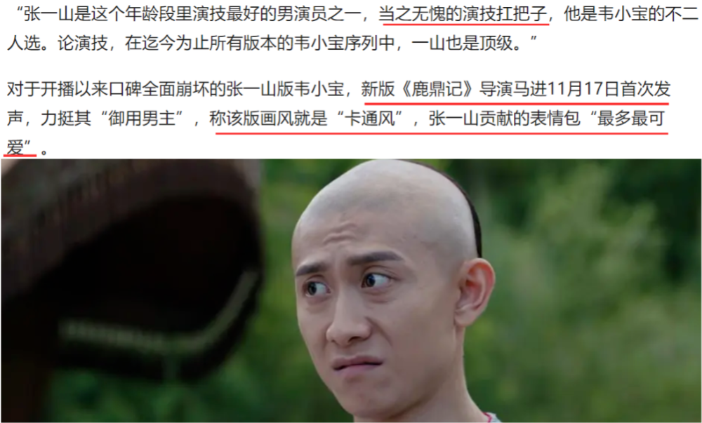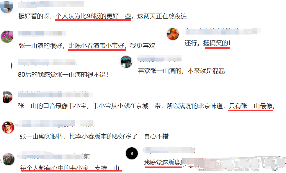 在刚上线时,新版《鹿鼎记》可谓是差评如潮,承受了很多观众的质疑。面对这些声音,导演多次发声力挺张一山 ,称其为“当之无愧的演技扛把子”,看来导演对张一山饰演的韦小宝非常满意。不行说陈小春饰演的韦小宝给我们留下了深刻印象,我们就认为其他人演的都是错的,都是不符合韦小宝形象的。毕竟这是观众们的固有认知,而不该该读者的。