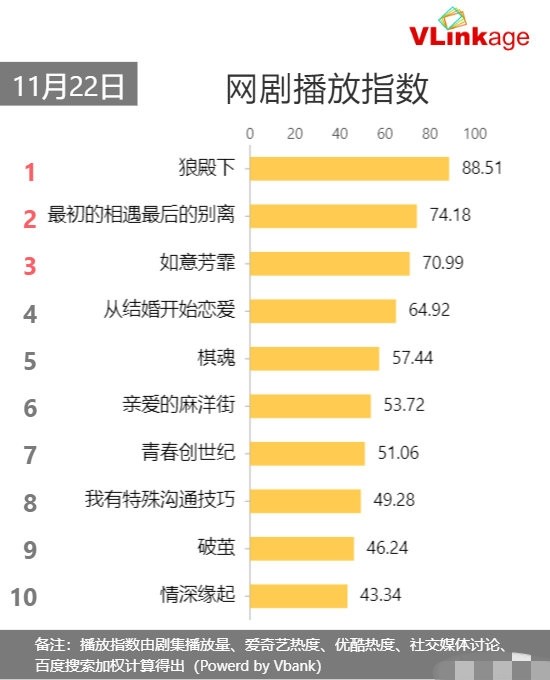 肖战 作为《狼殿下》男二号,凭借自身的顶流价值,为这部剧贡献了很大的流量。 目前在VLinkage榜单中,李沁 、王大陆 、肖战主演的《狼殿下》热度高居第一名,林更新主演的《最初的相遇,最后的别离》排在第二。