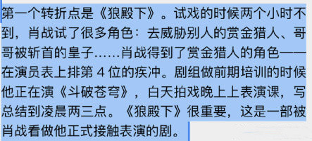 对于肖战来说,这是他第一部出演的古装剧,充满了高难度挑战。在试镜以后,他最终得到了赏金猎人疾冲的角色。看完《狼殿下》,涓滴感受不到肖战的演技生涩,反而让人对他饰演的疾冲更加难忘。肖战表示,这是他成长速度最快的一部剧。