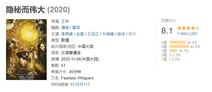 这部剧目前评分稳定在了8.1,品质还是不错的。只要不烂尾,剧荒的无妨一看。