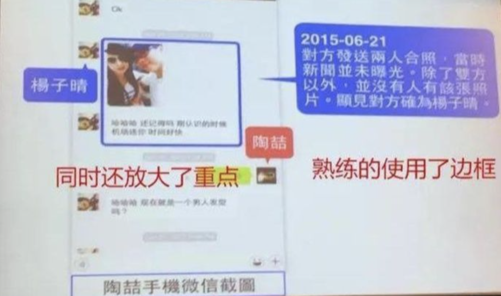 5年前, 网友晒出数百条杨子晴与陶喆私密的聊天截图和音频。紧接着陶喆召开记者会还做成了ppt形式,不知道地还以为是产品发布会。他承认有婚内出轨行为并斥责杨子晴删减内容。