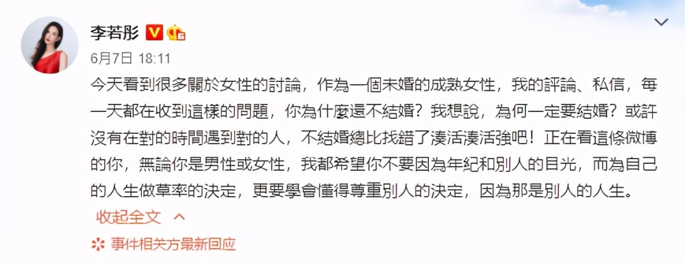 李若彤渐渐成为坚强、美丽和独立的代表,她谈过两个身上备受争议的点:婚姻与身材。