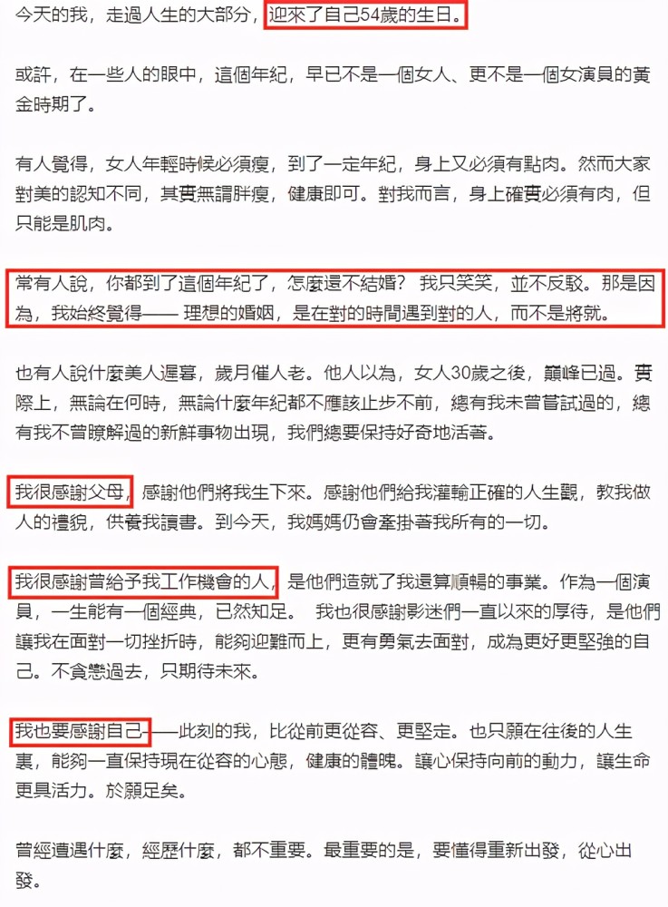从未曝光过年龄的她,在20178月16日宣布自己迎来54岁生日。她谈及自己的身材,表示大家认知差别,无所谓胖瘦,健康即可。对于她自己而言,必须有肉,但只能是肌肉。对于婚姻,她表示理想的婚姻,是在对的时间遇到对的人,而不是讲究。