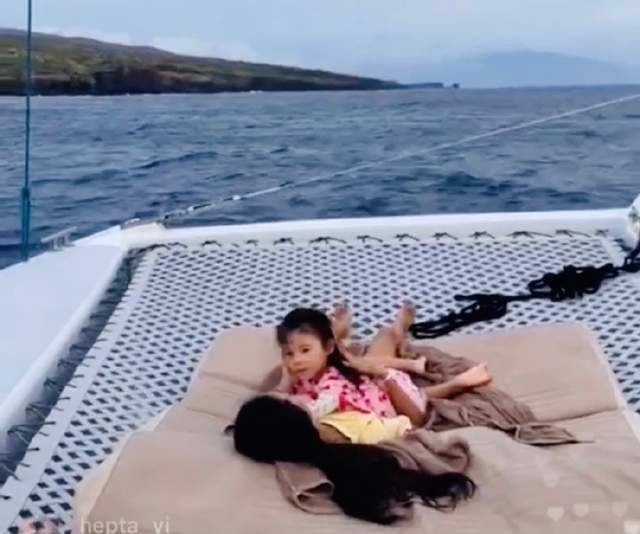 陈冠希还直播了妻女在游艇上吹着海风的画面,Alaia长发飘飘,手托腮帮子,看得人心都要化了。很显然他非常享受当下的生活,一家三口总给人一种岁月静好的感觉……