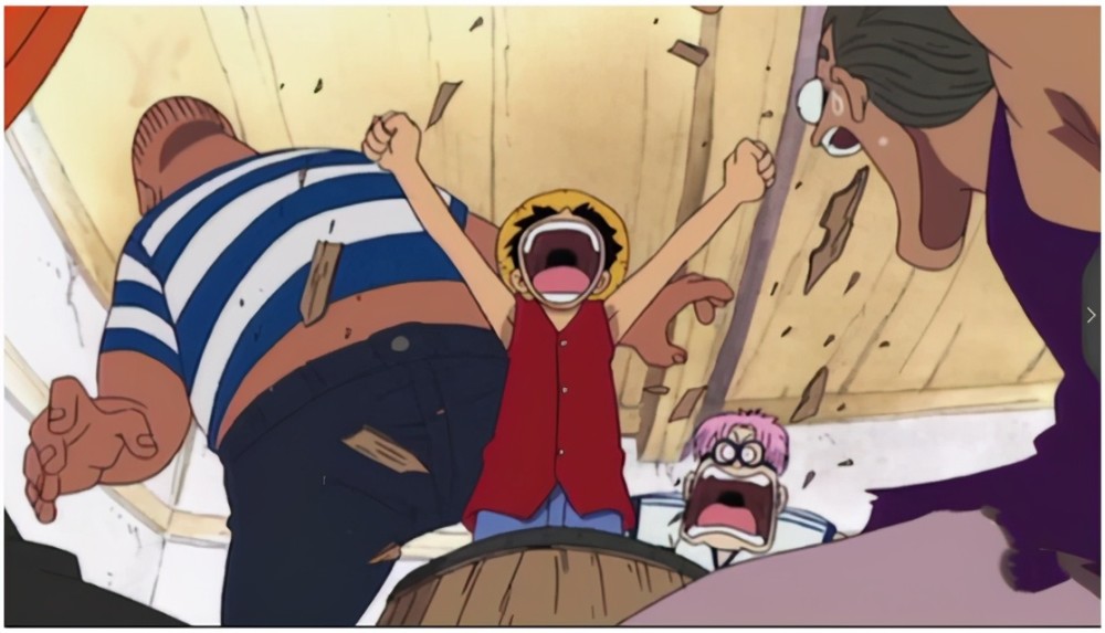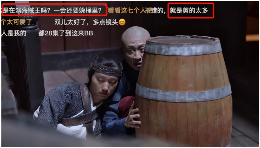 拿着木桶的韦小宝被指仿佛是演出了一段海贼王的经典片段一样。