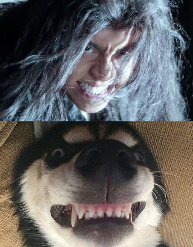 比如说,王大陆 开始的狼仔造型,看剧里面的时候,是否是很凶恶,如果这样一想到确实有那么一点野兽的感觉了,但是你们继续往下看,把他代入了哈士奇以后。