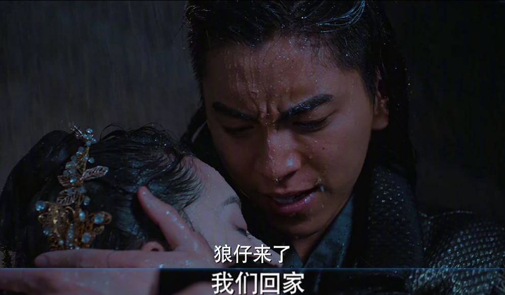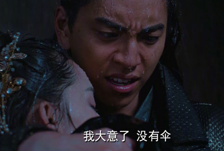 但是,我们别小看剧组的拍摄了,在这满脸的雨滴,淋湿的衣服,可以说是很贴切剧情了 。而他下一句话说的是,直接让我笑出声音:他抱着受伤的女主在这里哭,在这里我们真的可以感到那种悲伤的气氛,结果男主说了一句:我大意了,没有伞。