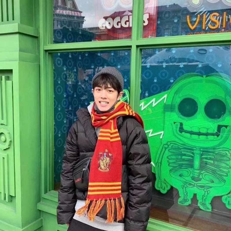 比起古代装的霸气灵动,现代装的肖战看起来就像小男生一样,特别是他的脸还非常小,是很多女生都想拥有的巴掌脸。哪怕他穿着非常臃肿的黑色羽绒外套,也不影响他高挑纤瘦的身形,但是这一条红色围巾看起来有点喜感,都说大家叫他男神,但是笑起来真的挺憨。