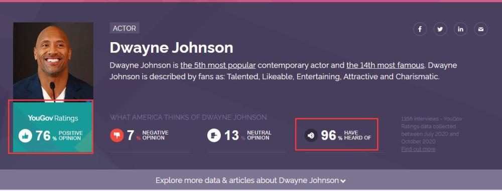 其次,大多数观众都很喜欢强森,他的路分缘很好,所以他的电影观众基本都买账。