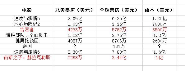 这里还是直接摆数据,讲道理,由于强森是在2011年参演《速度与激情》系列的,这里就从他2011年开始演的电影算起。