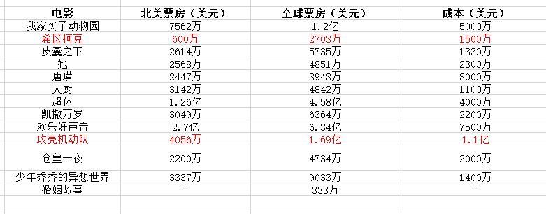 惯例,上数据,斯嘉丽加入漫威宇宙是2010年的事,所以这数据就是2011年至今的除漫威外所有电影的成绩。