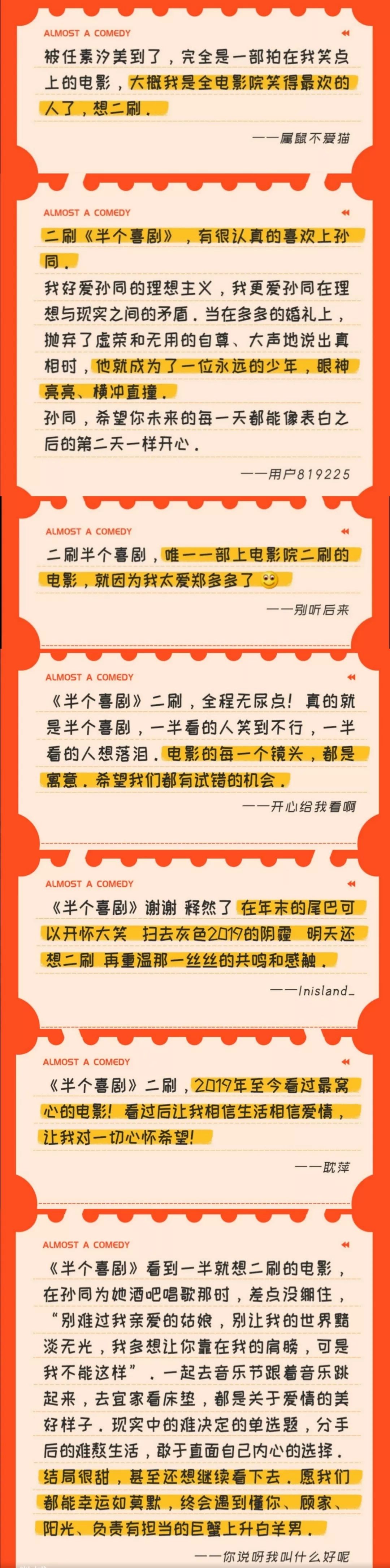 《半个喜剧》电影推荐语是:看个笑话,别嫌事大。