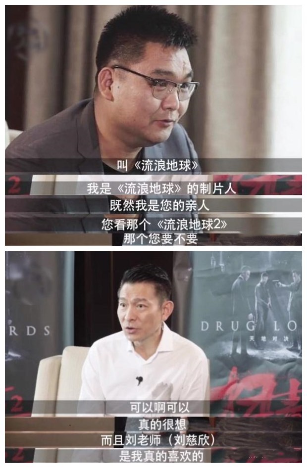 还没等龚格尔说完,刘德华就打断他了:“可以啊可以啊,绝对可以,我真的很想,而且我真的喜欢刘老师(刘慈欣)。”看得出来,刘德华是很激动的,他很想参演这样的科幻巨制。龚格尔没想到刘德华答应得这么痛快,怕刘德华反悔,赶紧对镜头说:“影像证明,刘德华有可能考虑《流浪地球2》。”