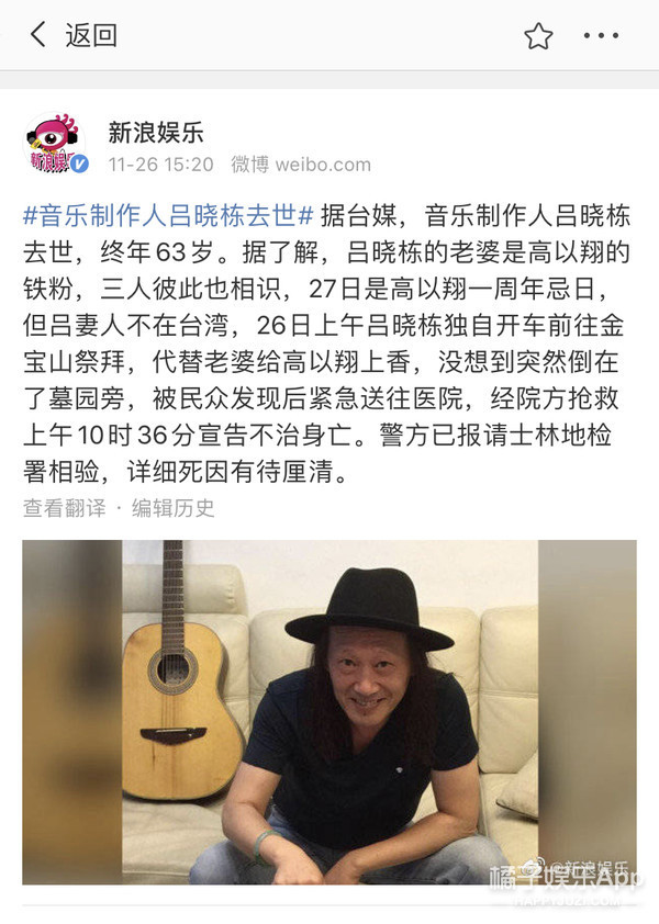 昨天,台湾音乐制作人吕晓栋在金宝山祭拜高以翔时,