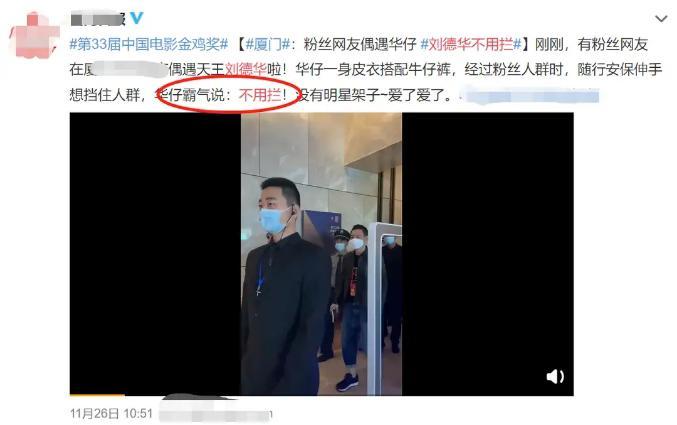 对于刘德华能够参加这次活动,粉丝们都觉得非常兴奋,毕竟今年因为疫情的缘故,很多明星都减少了自己的工作。很多现场的粉丝在看到他以后都开始激动的拍照,在保镖前来阻拦的时候,他还非常宠粉地表示不消阻拦。