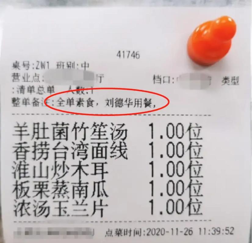(刘德华订餐小票)