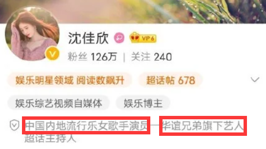 而沈佳欣的简介中写明是中国内地流行乐女歌手演员、华谊兄弟旗下艺人超话主持人,代表作有《七月七日晴》,但搜遍全网,却并未发现有该艺人的信息和作品,有网友质疑这是个假艺人,而从她的发文来看,也都是蹭热度,用各种极端的语言来博取关注。
