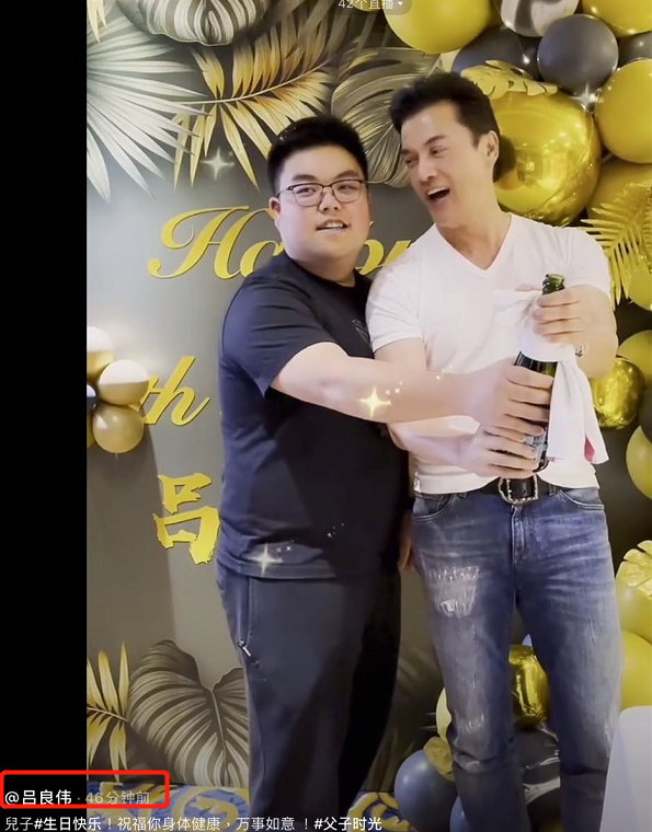 看视频吕良伟和妻子明显没少为儿子的生日宴操心,视频背景后有明显的金色贴纸写着happy birthday吕善扬的字样,装饰精致又奢华,还演出了一出父子合力开香槟的温情戏码。