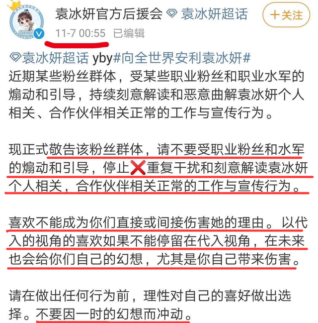 这个月初,袁冰妍后援会也发博警告过CP粉,让他们不要重复干扰和刻意解读袁冰妍和合作伙伴的相关正常工作与宣传行为,不希望他们代入自己的视角,给她带来伤害,但没想到女方的声明才过去没多久,他们又逼得成毅的工作室发布声明,而且行径越来越过分。