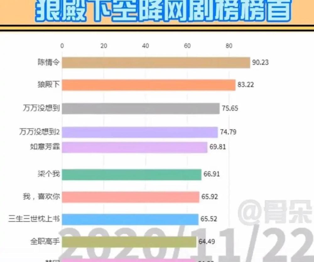 根据骨朵数据榜11月21日的数据,电视剧《狼殿下》以81.44的高分位居榜首。《陈情令》以81.27的分数位居榜二,紧随《狼殿下》身后。