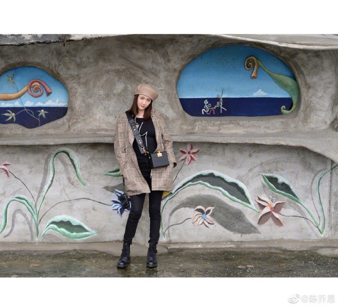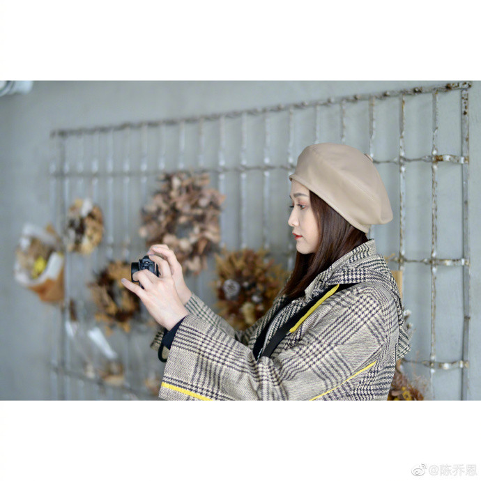 照片中,陈乔恩戴着潮款贝雷帽,身穿格纹外套,装扮休闲又不失俏丽。她拿着相机侧身入镜,“侧颜杀”超级美。不知道陈乔恩这段时间是否是胖了一些,脸上的“幸福肥”有些明显呀。
