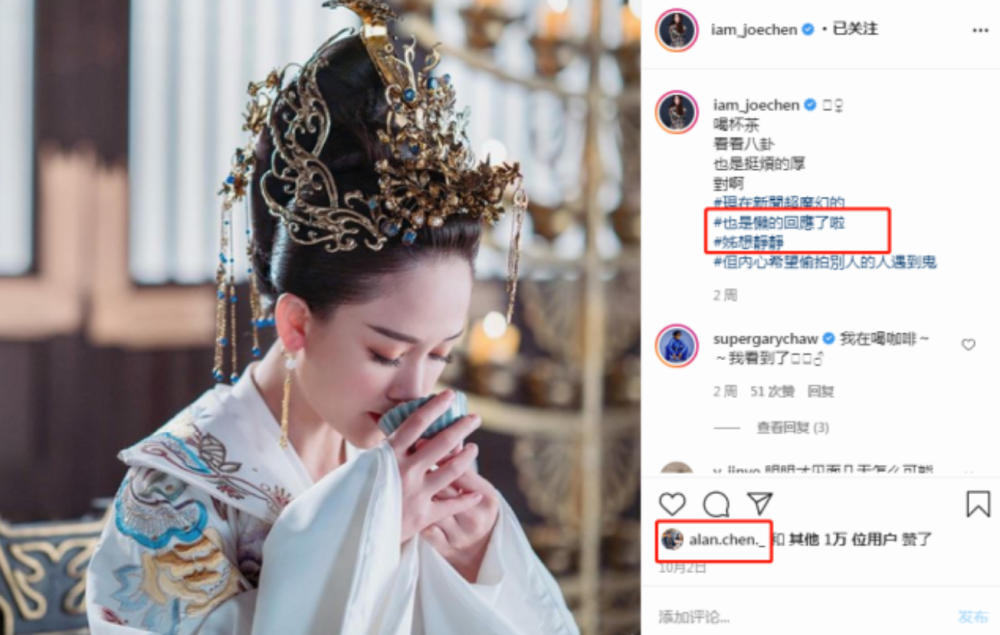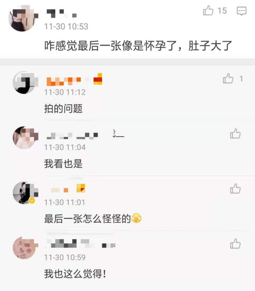 因此,在看到陈乔恩的全身照后,网友都直呼她像是怀孕了:“咋感觉最后一张像是怀孕了,肚子大了”、“我也这么觉得”、“我看也是”。