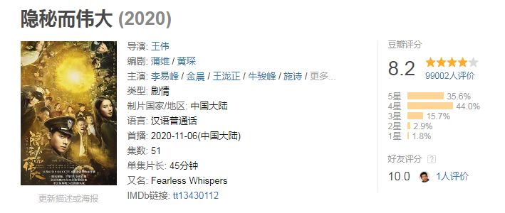 榜单中比较可惜的是《隐秘而伟大》,这部剧导演是王伟,主演除李易峰和金晨外,还有王泷正,他和王伟此前合作过《白夜追凶》,这个班底保证了电视剧的品质,豆瓣评分8.2,是同期上线电视剧中评分最高的。然而哪怕有这么好的口碑,却还是没有差评如潮的《燕云台》热度高,李易峰、金晨和牛骏峰的演员阵容并不比唐嫣、窦骁差,之所以热度落后,首要原因是题材限制。