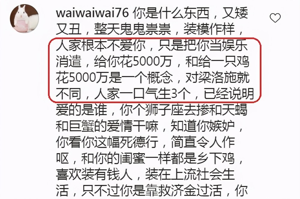 仍旧还是有一些朋友们羡慕郭嘉文这样子的生活,但也有一些朋友留言说她与梁洛施没法比,她就是人家给了5000万玩乐的一个工具,与梁洛施有着本质上的区别。