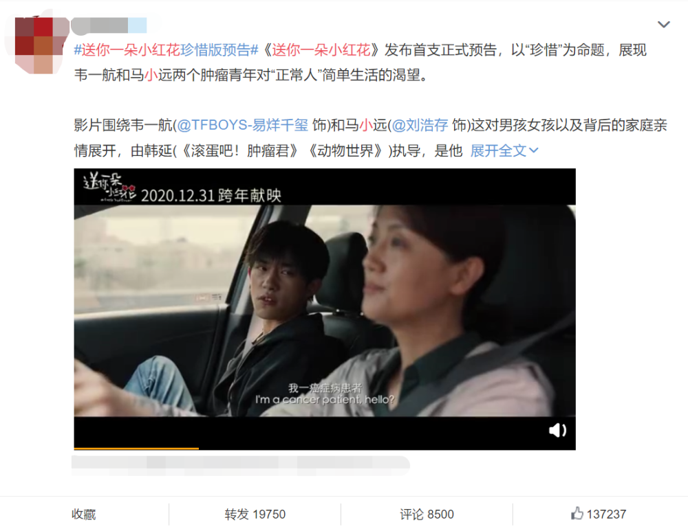 因为《少年的你》这部电影的珠玉在前,短时间内易烊千玺想要超越17岁的自己还是很是有难度的,这一次的《送你一朵小红花》的风评对于他而言无疑是至关重要。
